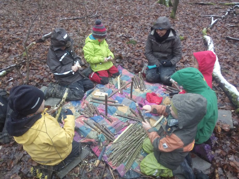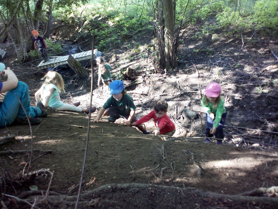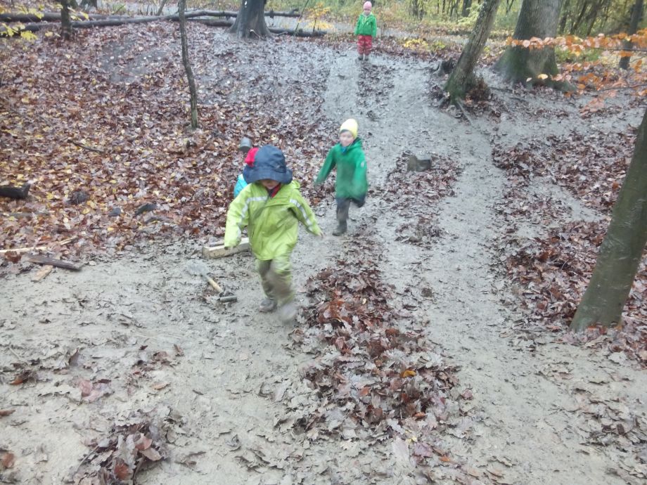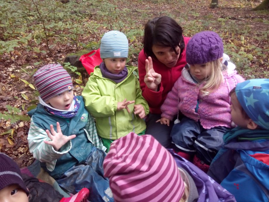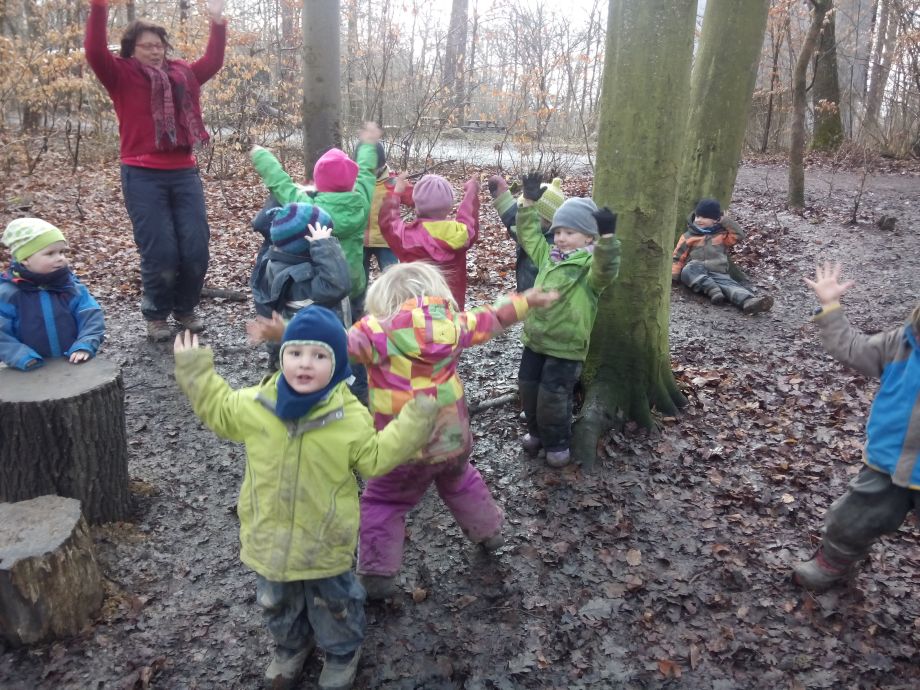Der Wald bietet offene, weite Spielräume und viel Spielmaterial. Bewegung und Spielen in der Natur schulen die Motorik, fördern die Phantasie und die Beobachtungsgabe. Die Kinder können sich zwischen den Bäumen austoben oder auch mal ganz konzentriert einem krabbelnden Käfer zusehen. Spielen in der Natur bietet viel Anlass zum Sprechen. Die Kinder müssen sich nicht nur miteinander einigen, sondern sie müssen viel erklären. So ist ein Ast mal eine Regenrinne, eine Schlange oder eine Rakete.